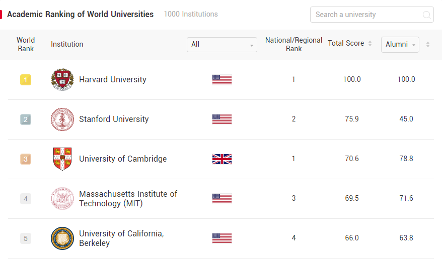 https://www.shanghairanking.com/rankings/