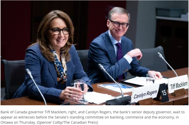 周四,加拿大央行行长蒂夫·麦克勒姆(Tiff Macklem)和副行长卡洛琳·罗杰斯(Carolyn Rogers)来到首都渥太华,出席参议院常务委员会(Senate’s standing committee )会议。