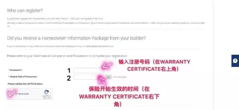 按照以上步骤就可以完成Tarion房屋保险的注册了,以后房屋出现问题就可以及时向Tarion申诉了。所以刚刚拿到钥匙的房主千万要注册哦!