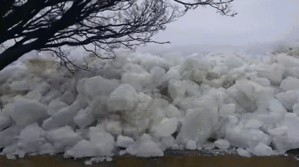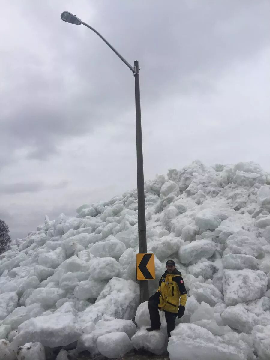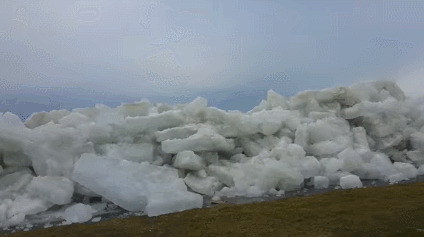 不到半天时间,被推上岸的冰块就已经超过了3米高,