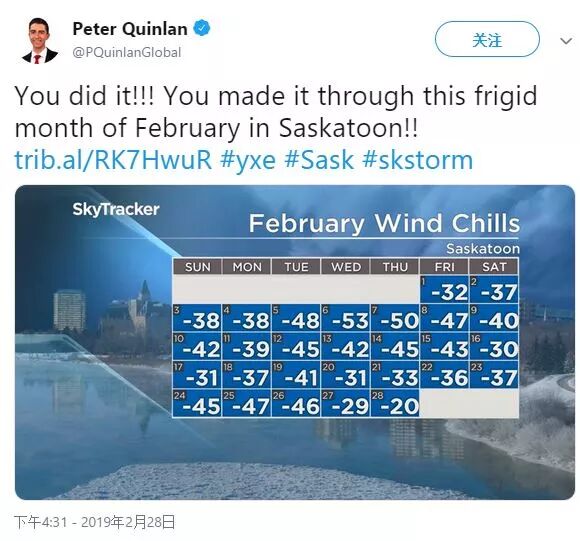 而过去的二月,旁边的萨斯喀彻温省份已经冷到不想解释,只晒出一张图: