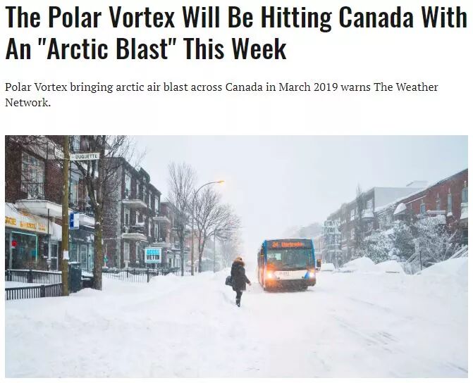 天气网发出警告,恐怖的“极地漩涡”( Polar Vortex )正冲击整个加拿大,